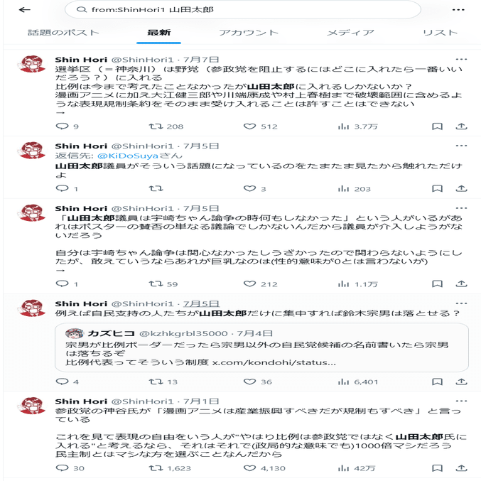2022年7月8日から2025年7月9日まで「安倍」で検索してもポストないんだよね。国葬とか色々あったのに全くポストしてなかったのに、選挙になったら利用かよって思った。