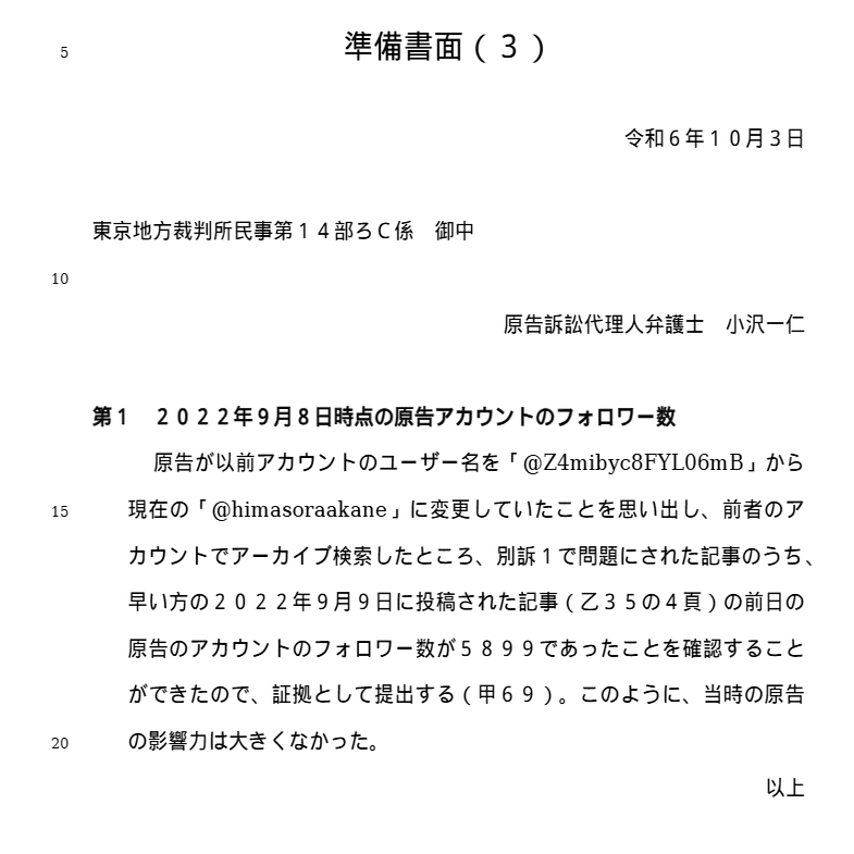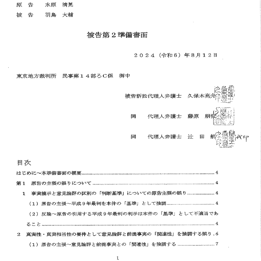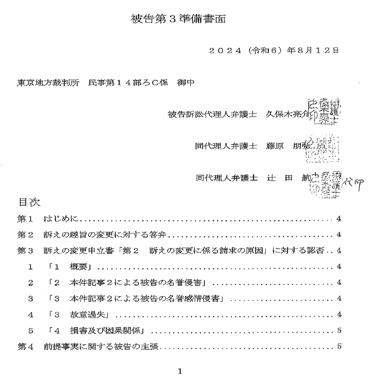 まず2024年8月15日になぜか準備書面が2通でてますね。なぜ1つにまとめず2つになったのかは謎ですが