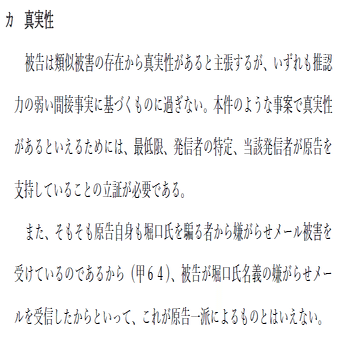 「本事件は、意見の表明などではなく、なんらかの事実を摘示したものだと裁判所は考えている。その上で双方争われたい」