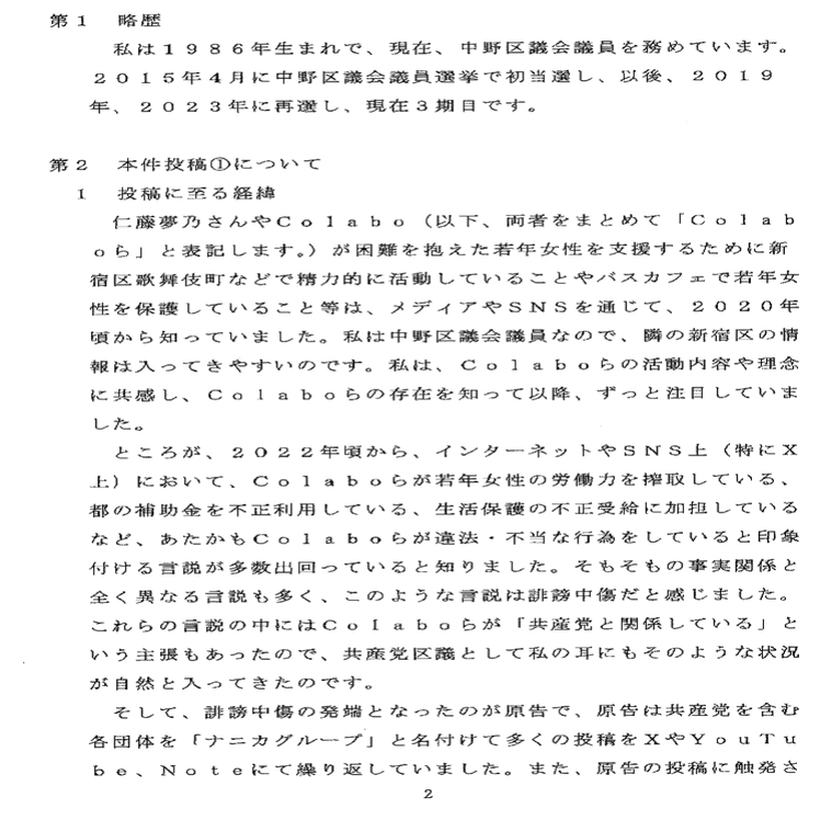 共産党中野区議会議員羽鳥だいすけさん訴訟③