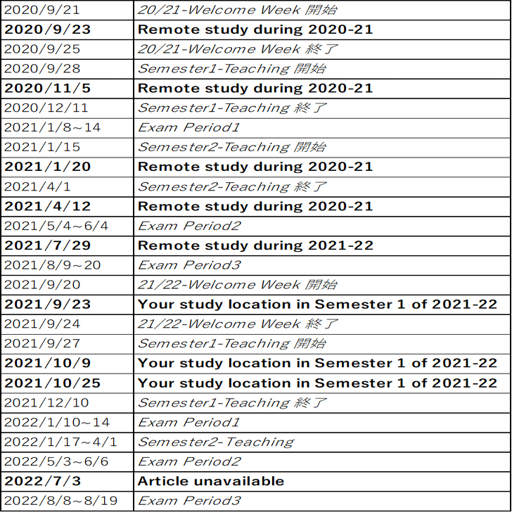 ・Semester1は一部学科を除いてリモート受講可能※戦争学科は受講可能
