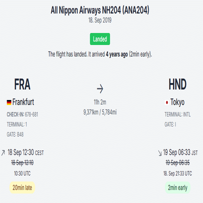 そもそも「2022年9月18日発のNH204便」は存在しないようなので、この可能性はゼロですね。