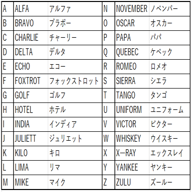 通話表(フォネテッィクコード)とは、無線での通信など、雑音が混じる会話を行う際に聞き間違いを防ぐために作られた規則のことです。