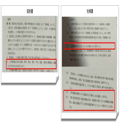 なお、仕様書第14条(8)の直接折衝等は記憶にない表現である。契約の当事者でない第3者を介した交渉をしてトラブルが生じたことがあったのでは。過去の仕様書との相違を見てみたいところである。