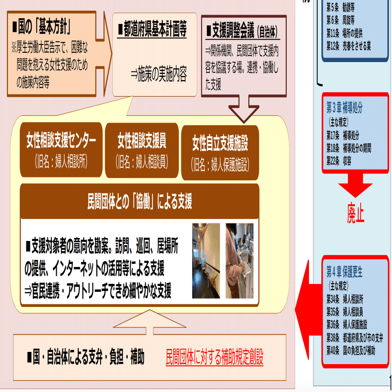 現在、「困難な問題を抱える女性への支援に係る基本方針等に関する有識者会議」が開催されており、民間団体への補助規定が検討されるようである。