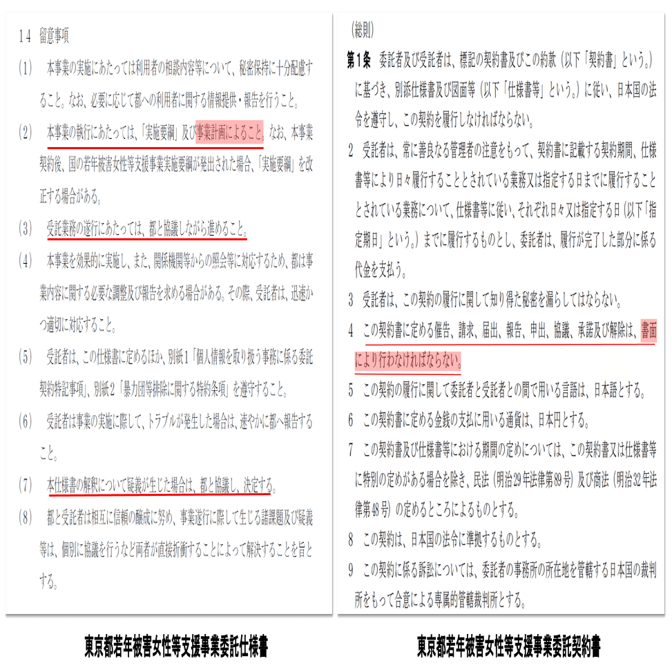 以上より、事業計画書の細目を流用する場合は、仕様書上東京都との協議や承諾が必要であるが、colaboは当該手続きを踏んでいなかったことになる。また、11月上旬までは東京都もcolaboも事業計画書の細目に拘束されるとの認識が双方にあったことも明らかである。