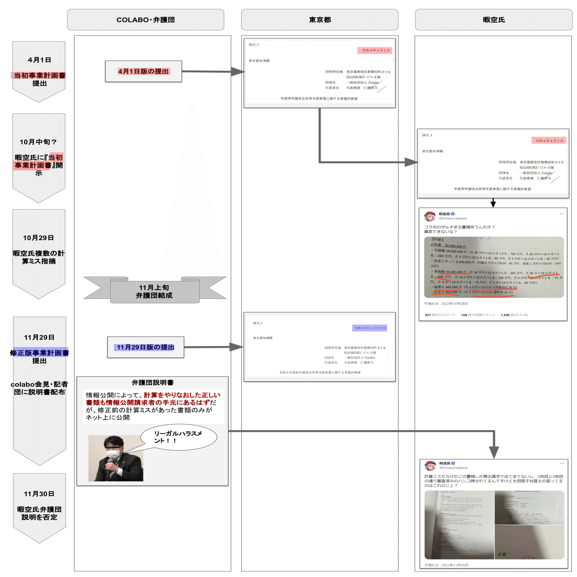 また、colaboは11月29日に修正版を東京都に提出したことも明らかとなった。11月29日はリーガルハラスメント会見が行われた日でもある。