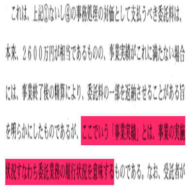 なお、「契約段階の事業実績は履行状況の意味として仕様書を修正した」という解釈は成立しない。支払い条件の変更という契約条件の大きな変更を加える場合、公平性と透明性が失われるため再公募からやり直す必要が生じる。