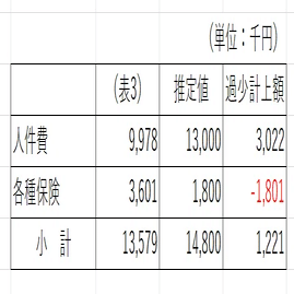 人件費:事業按分が不適切、税理士等が全額計上、所得税分が過少計上