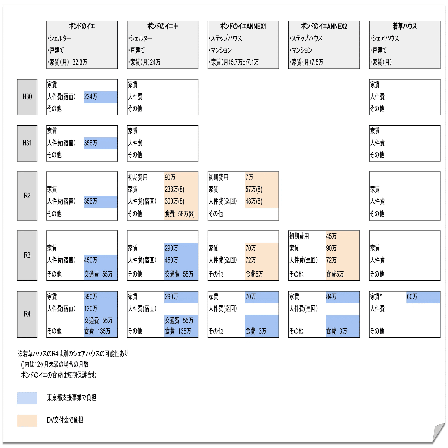 R2でシェルター費用をDV交付金で手当てし、R4ではステップハウスの費用を女性支援事業で手当てしている。BONDも東京都もステップハウスはDV交付事業、シェルターは女性支援事業といった区別は一切していない。