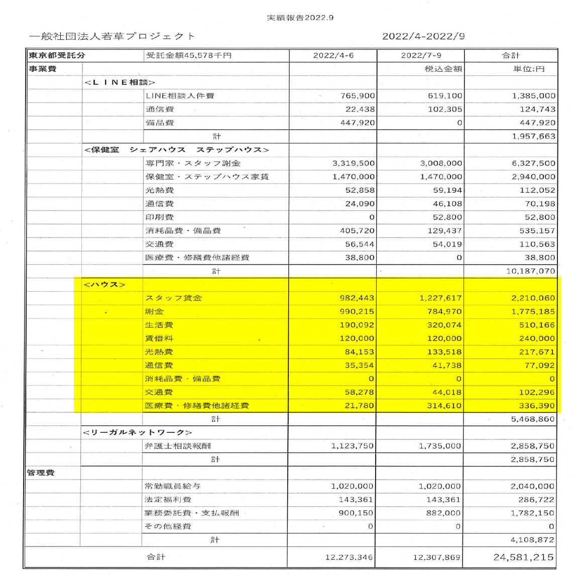 以前、BONDの不動産関係の請求・支出を整理した記事を書いた(→こちら)。なお、BONDは不動産費用の清算内訳を提示してないため、女性支援事業については事業計画書ベースである。