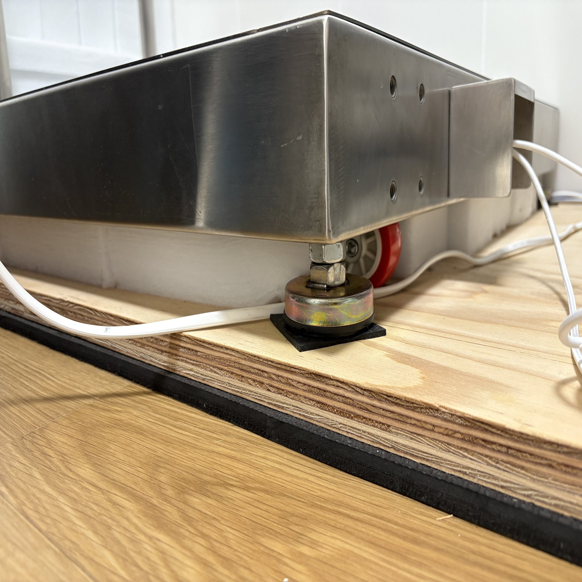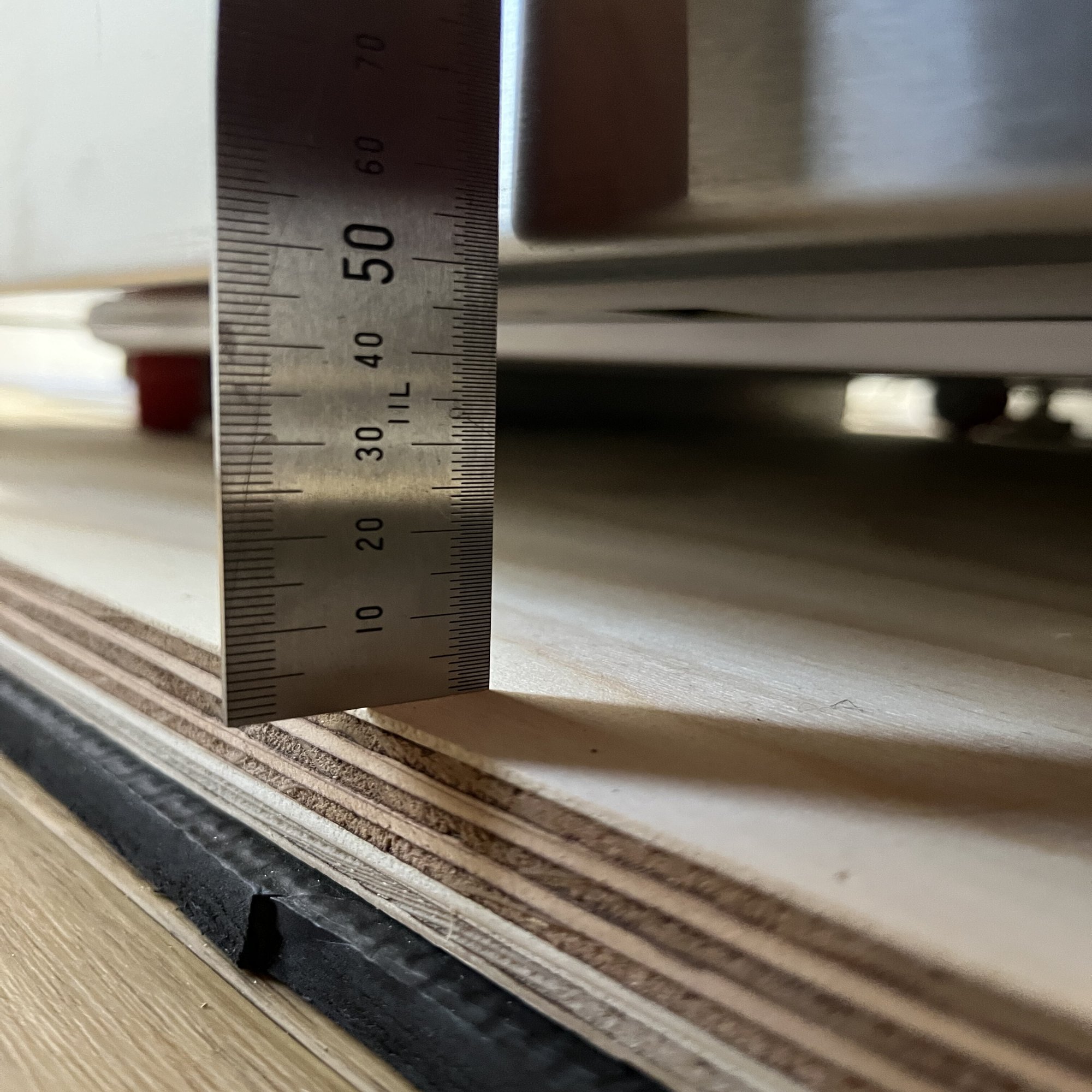 ちなみに、パネル内部もちょうど50mmくらいの高さで空間があり、ホワイトキューオンで埋めたところ、足音が抑制されすぎて精度が落ちるレベルだったのでやめました。