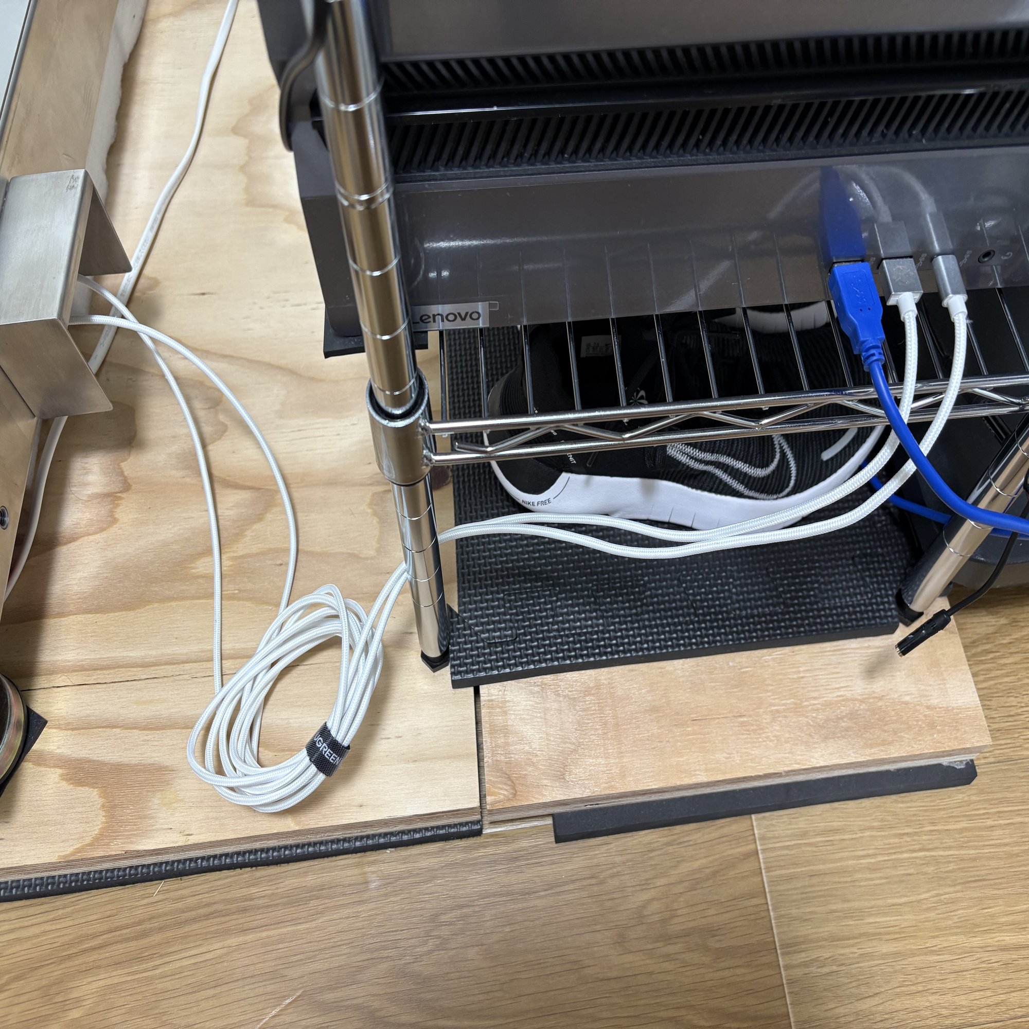 鍵盤上面が地面から90cmとのことで、高さ調節のしやすいスチールラックを買いました。