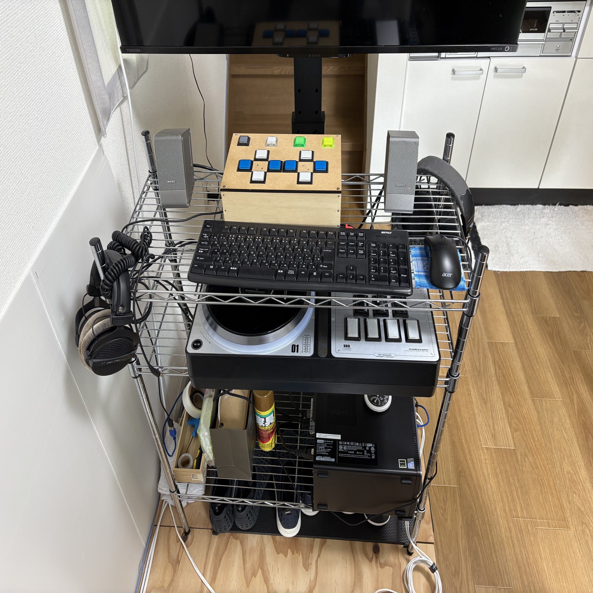 以前作成したDDRコントローラーや、デスクトップPCを収納しています。
