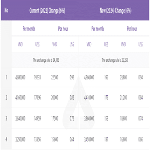 ベトナムの最低賃金は2024年の7月の改定では、