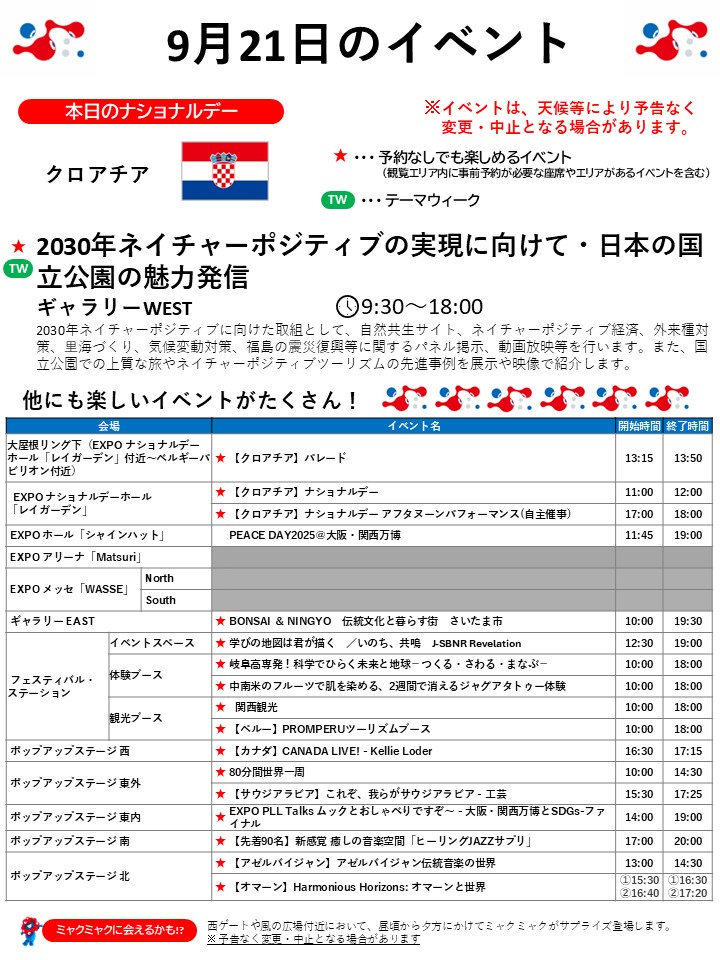 9月21日(日)の万博情報です