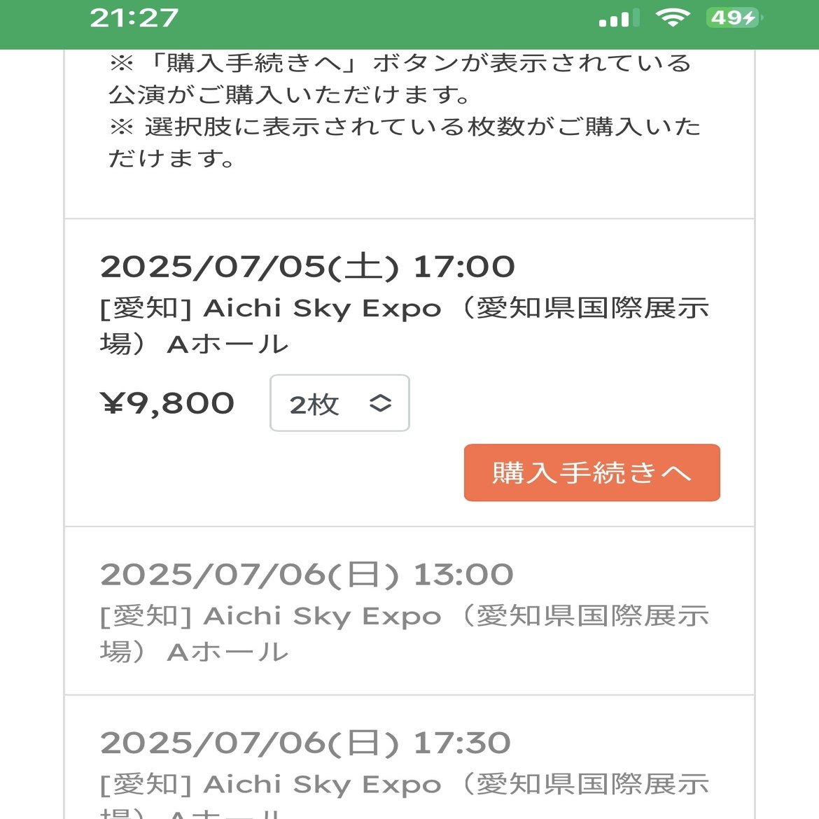 愛知Aichi Sky Expo Aホール7/5(土)17:00☆7/6(日)13:00☆、17:30☆