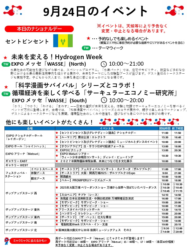 9月24日(水)の万博情報です