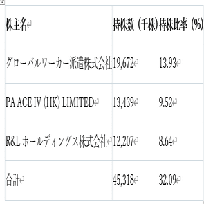 信頼できるソース(官報、報道、EDINETなど)で裏付け済みです。① グローバルワーカー派遣株式会社(13.93%)