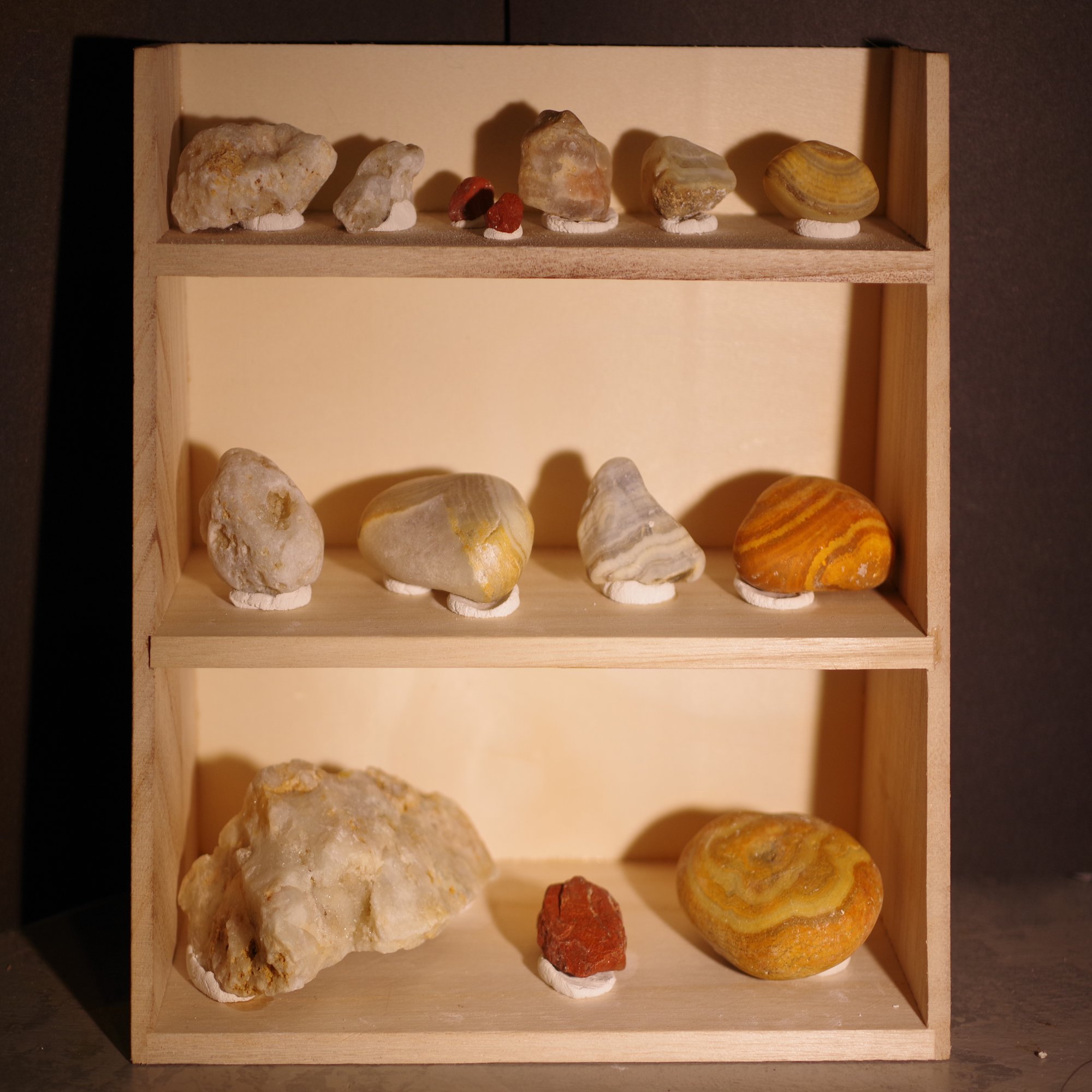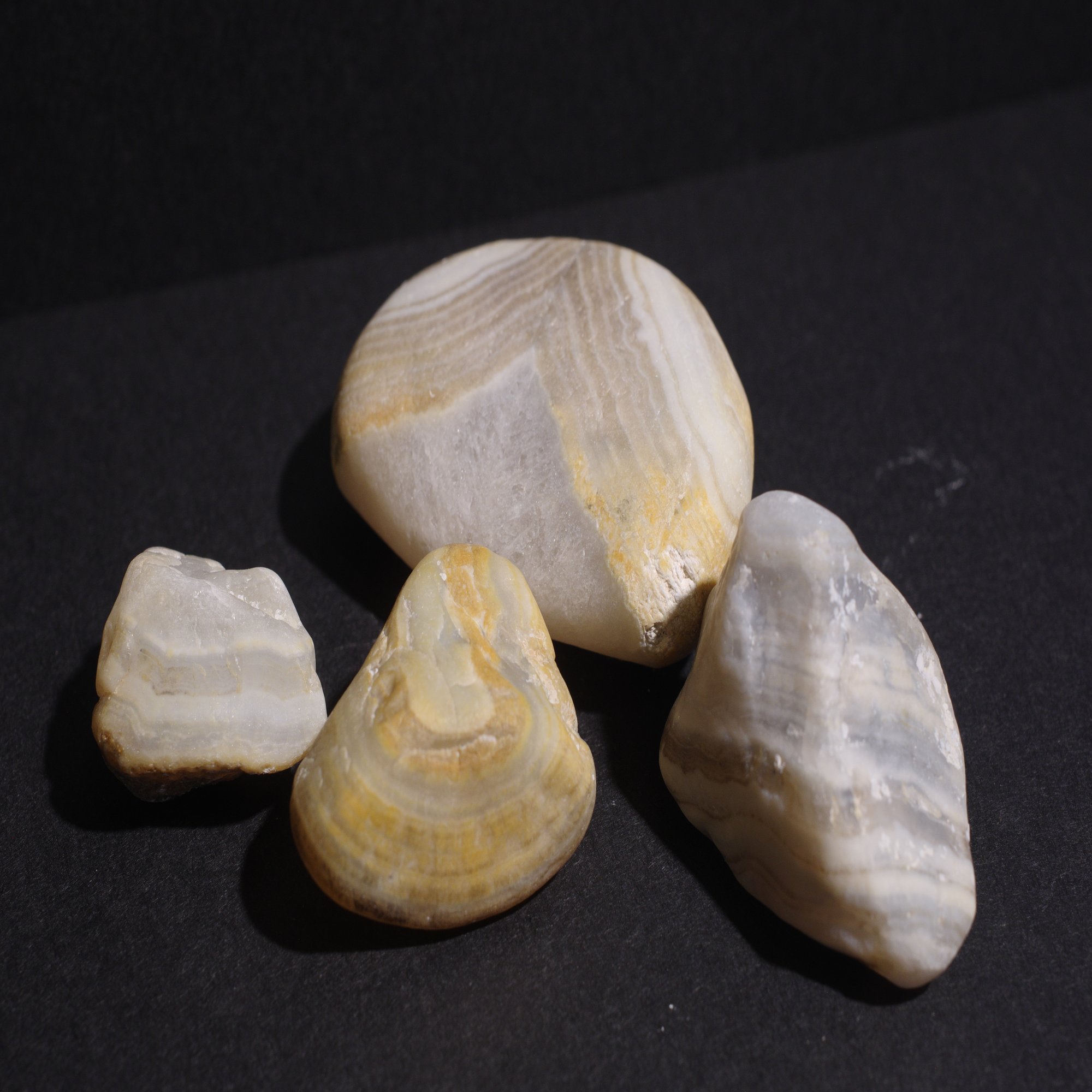 瑪瑙や水晶結晶が見られる石英シリーズに加えて、黄色い石や赤い石が目立った。逆にシーグラスとか陶器はあまりなかった。