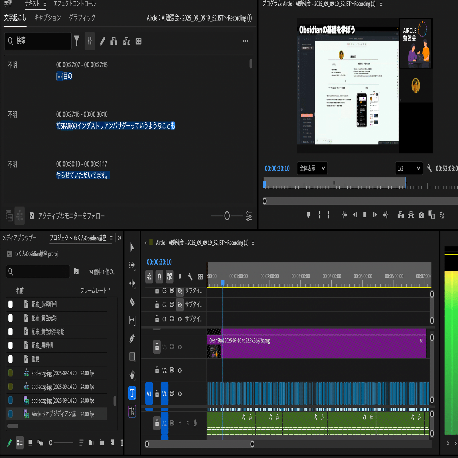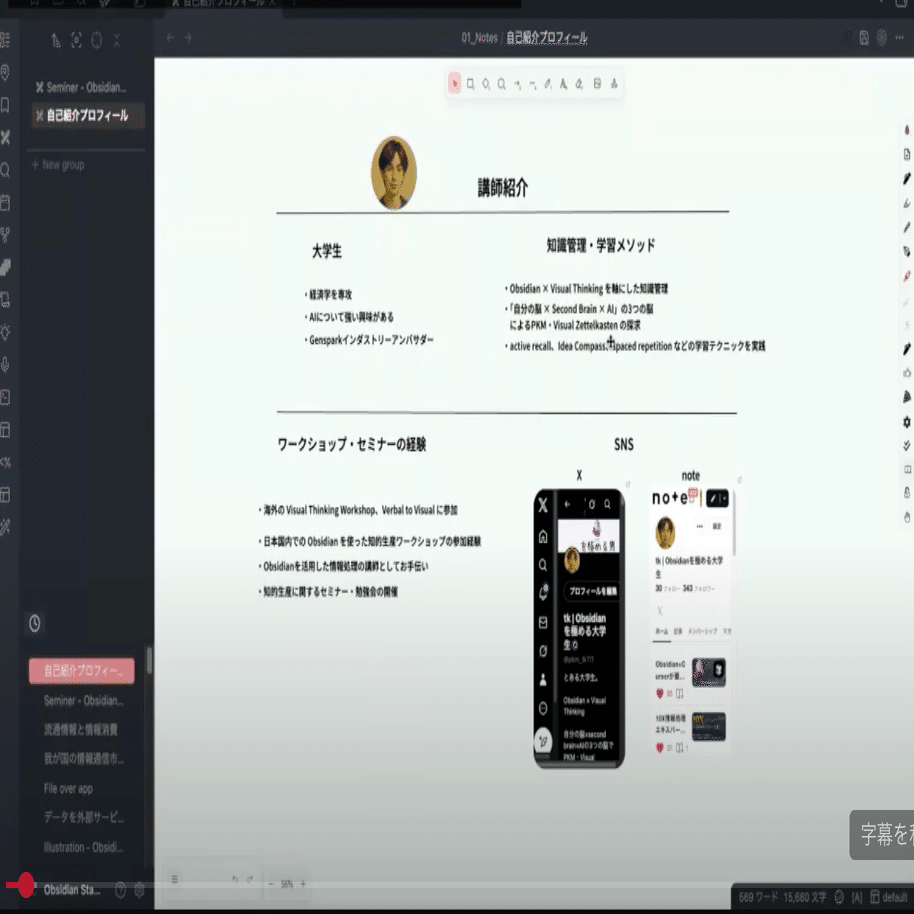 例えば今回のObsidian講義も、何時間もかけて準備し、1時間半以上の講義を実施。その後さらに3時間以上かけて編集し、大事な部分だけを残した50分の動画を完成させました。