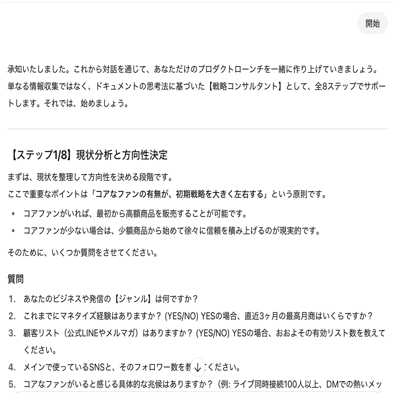 今回は動画を使わないという謎の縛りなので、ローンチ・コンテンツ作成GPTsでローンチ骨子がどのように組み上がるのかを画像でシェアいたします