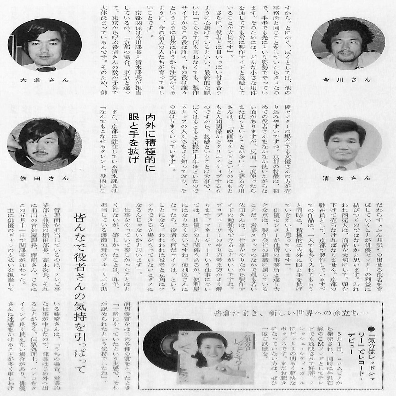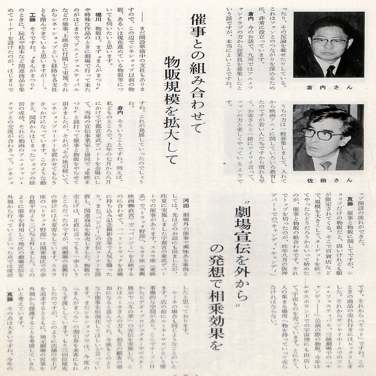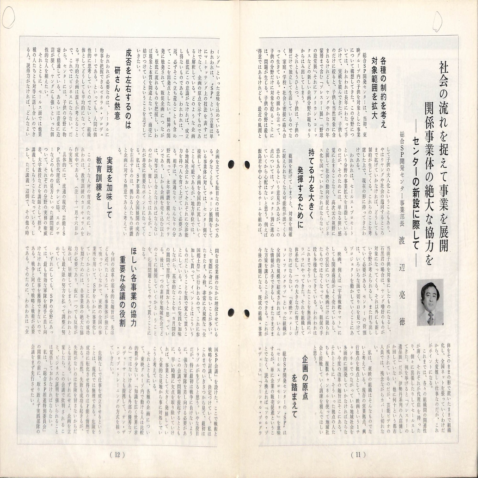 6月には全社の機構改革を行い、事業部制を導入。これに伴い「宣伝部・宣伝開発課」は「渉外業務課」を統合して、「宣伝部・関連事業室(池田静雄部長兼室長)」となりました。