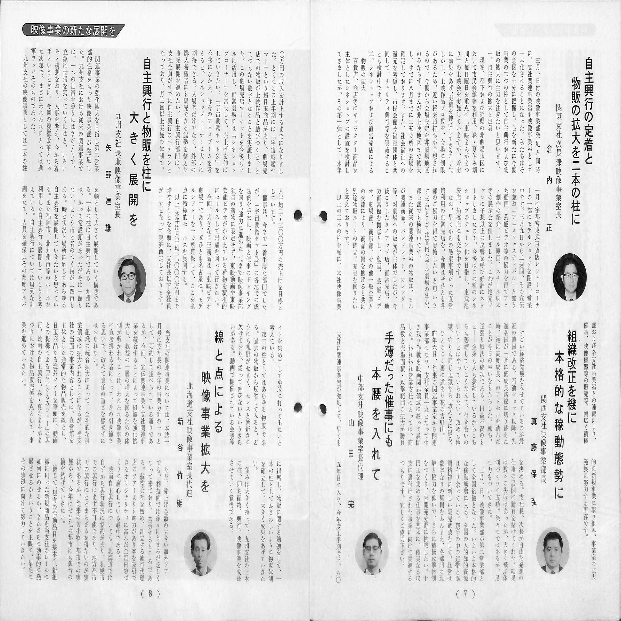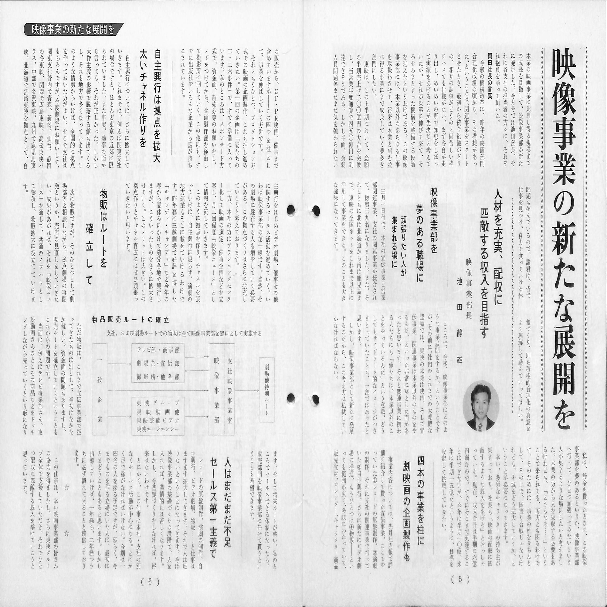 1978年3月1日、映像関連事業の拡大を目指した岡田は、「宣伝事業部」と「営業部関連事業課」を合わせて本社に「映像事業部(池田静雄部長)」を設置、ここに各支社の関連事業を統合し関連事業の全国体制を整備しました。