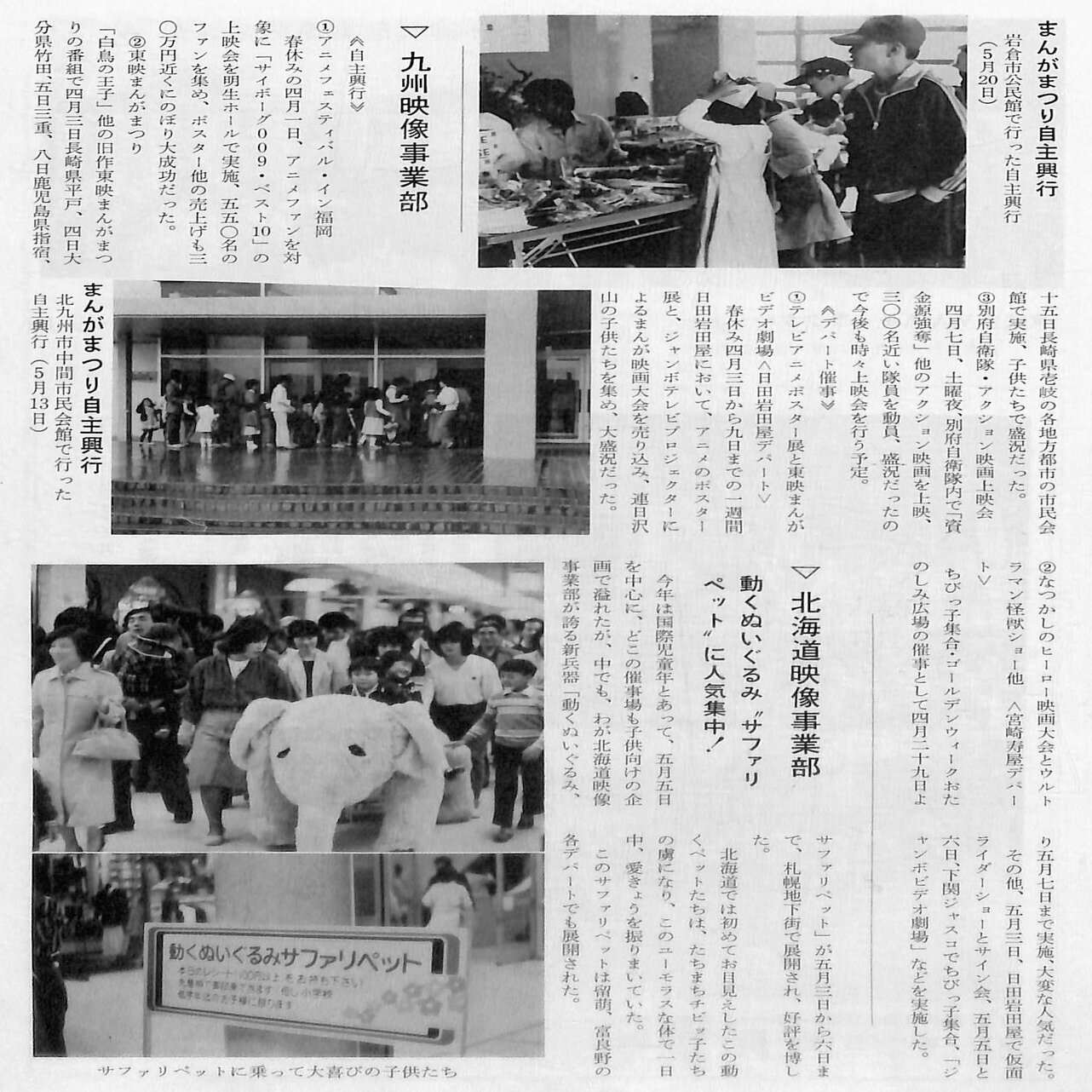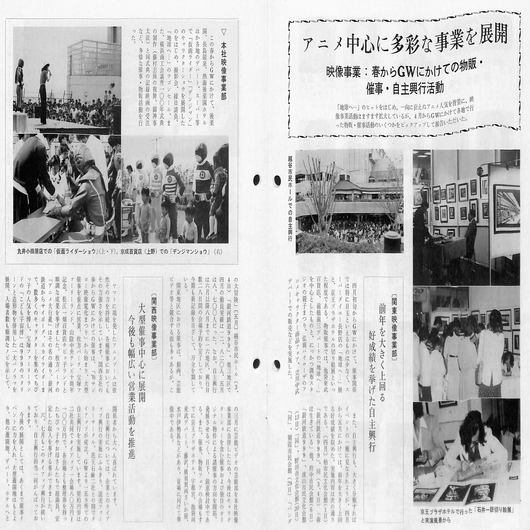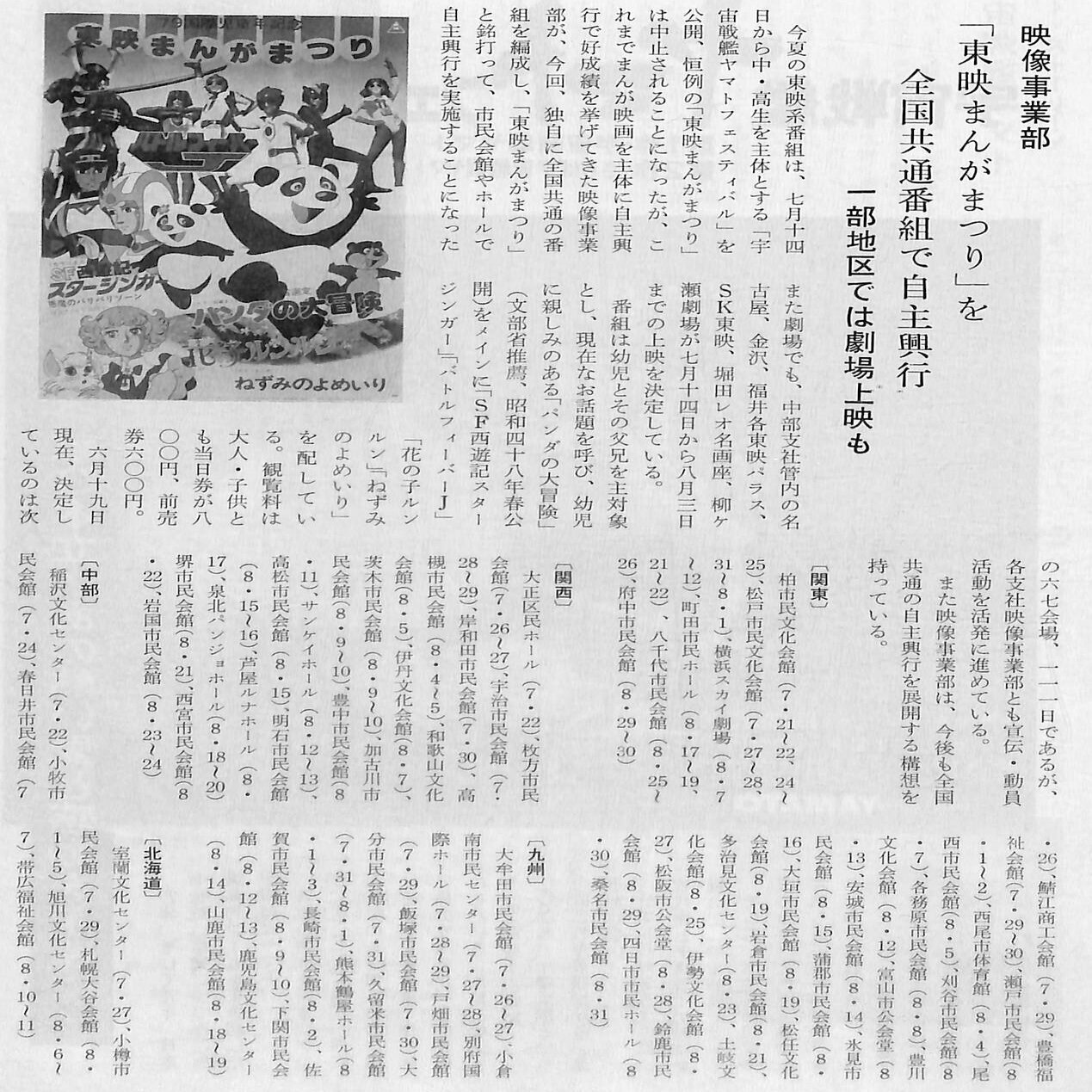 全国各支社の「映像事業部」は、全国の市民会館や公民館などで人気の「東映まんがまつり」の自主興行を数多く開催しました。