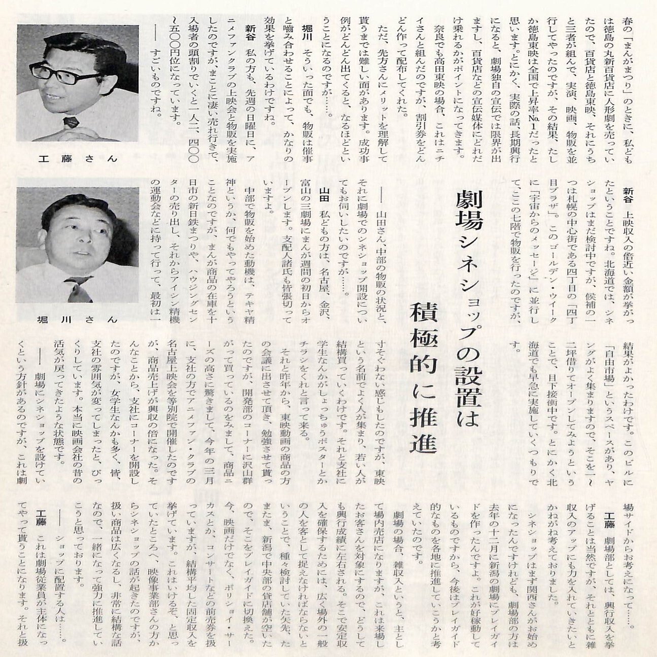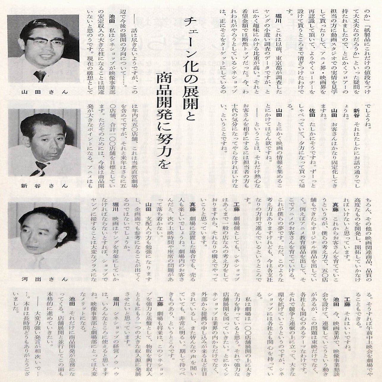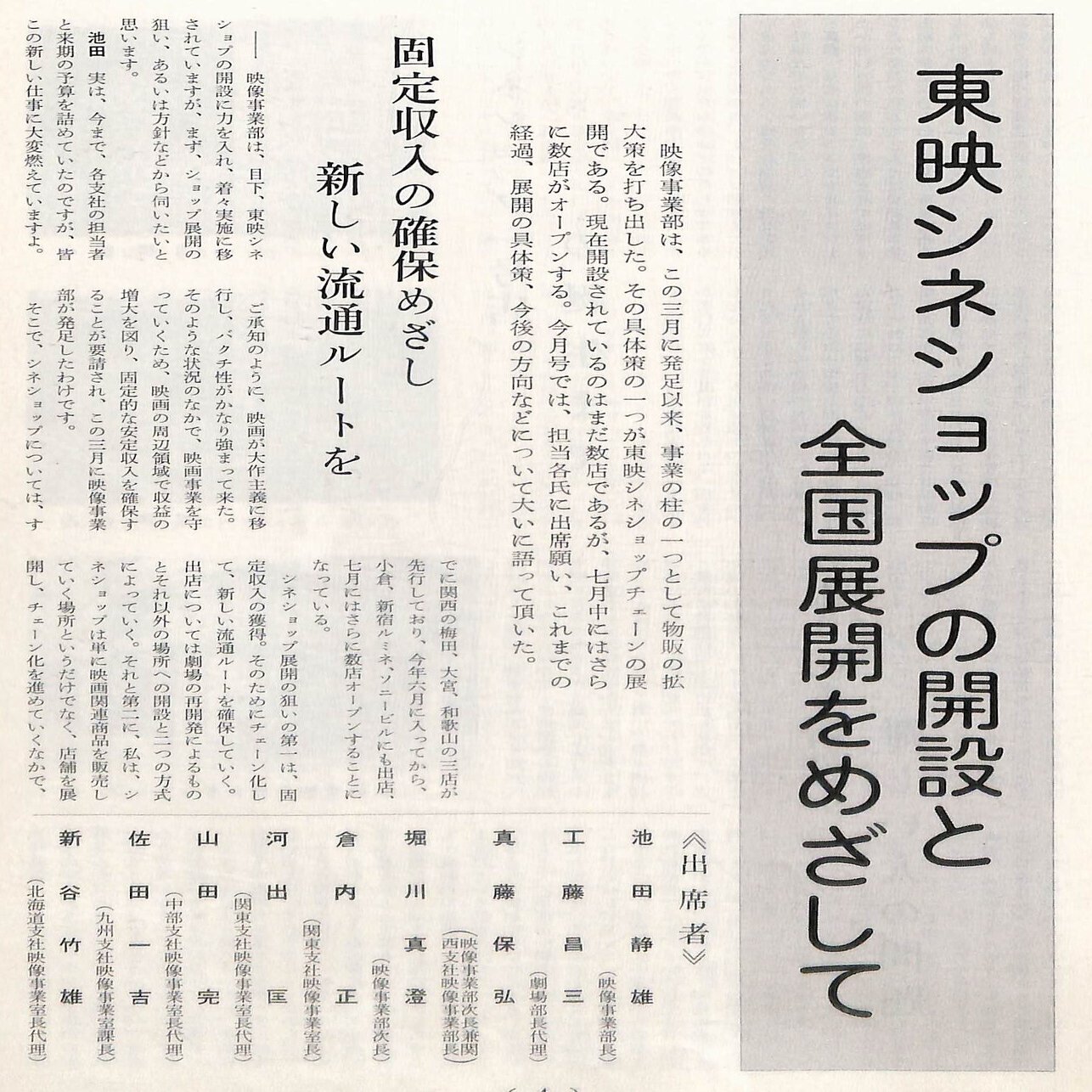 1971年8月に代表取締役社長に就任した岡田茂は、新規事業開発を進めるため、1972年3月、「宣伝部(取締役池田静雄部長)宣伝開発課」を設けます。
