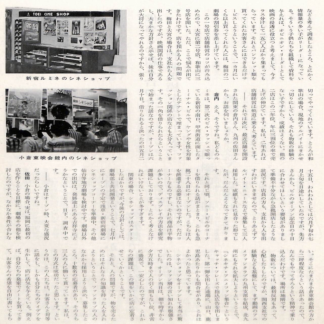大阪梅田、京都四条大宮、和歌山と「関西支社映像事業部」が始めた「東映シネショップ」は、『宇宙戦艦ヤマト』から始まったアニメブームや角川ブームにのり、関西から北九州小倉、新宿ルミネ、ソニービルと全国に拡大して行きます。