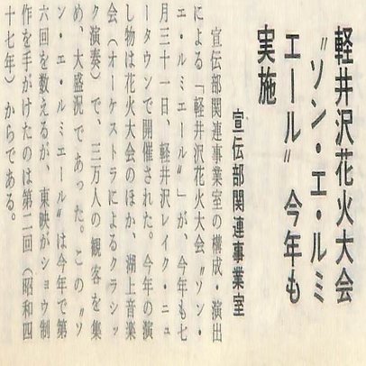 まずは1972年8月5日、軽井沢花火大会での三越主催のショー「軽井沢ソン・エ・ルミエール」を制作しました。