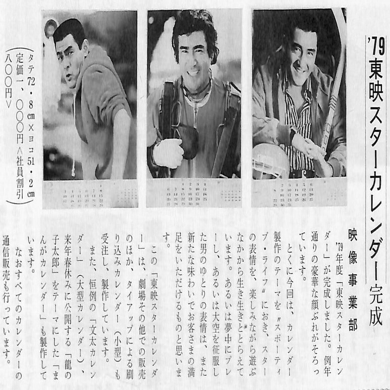 「映像事業部」は、これまで宣伝部が担当してきた東映スターカレンダーの製作販売を行います。