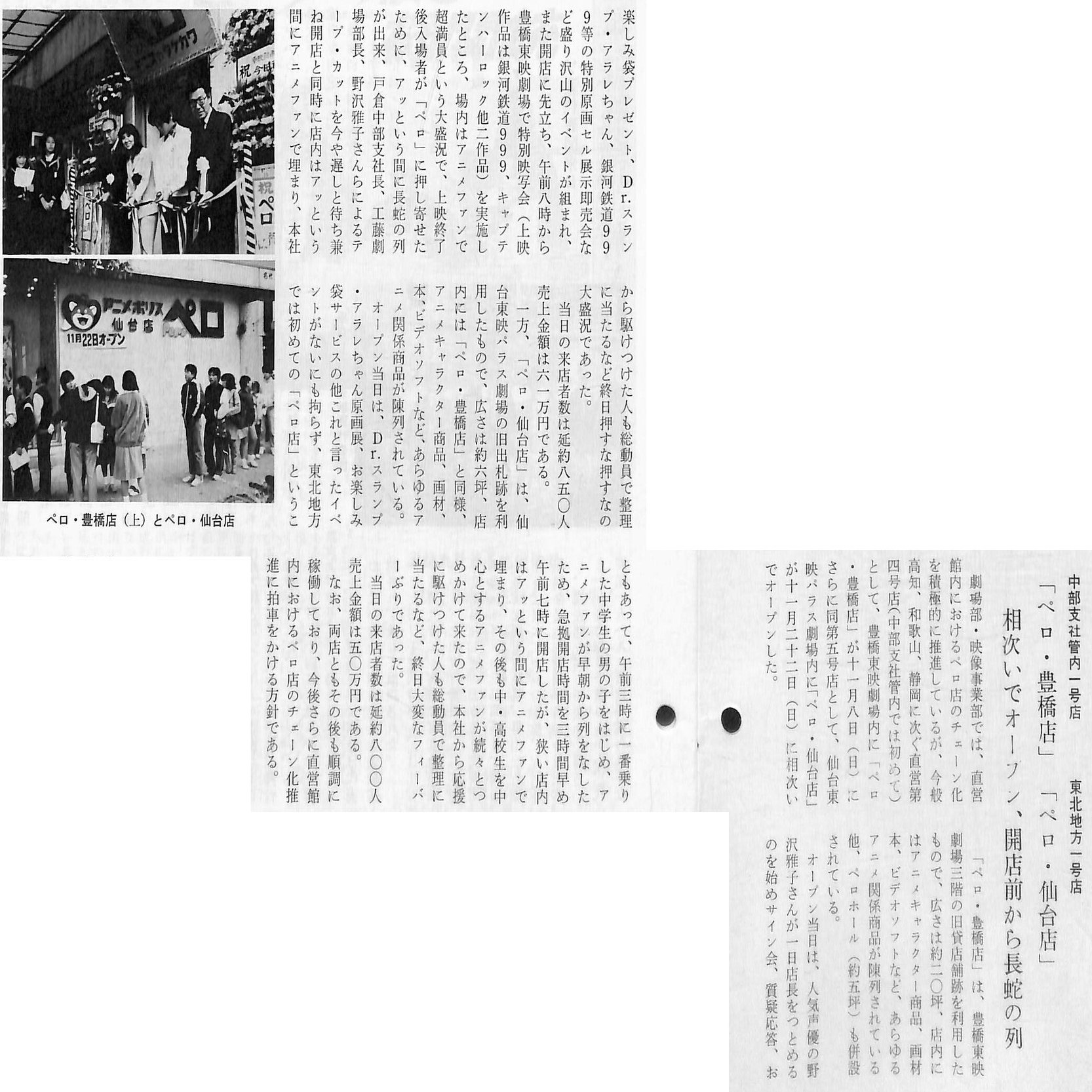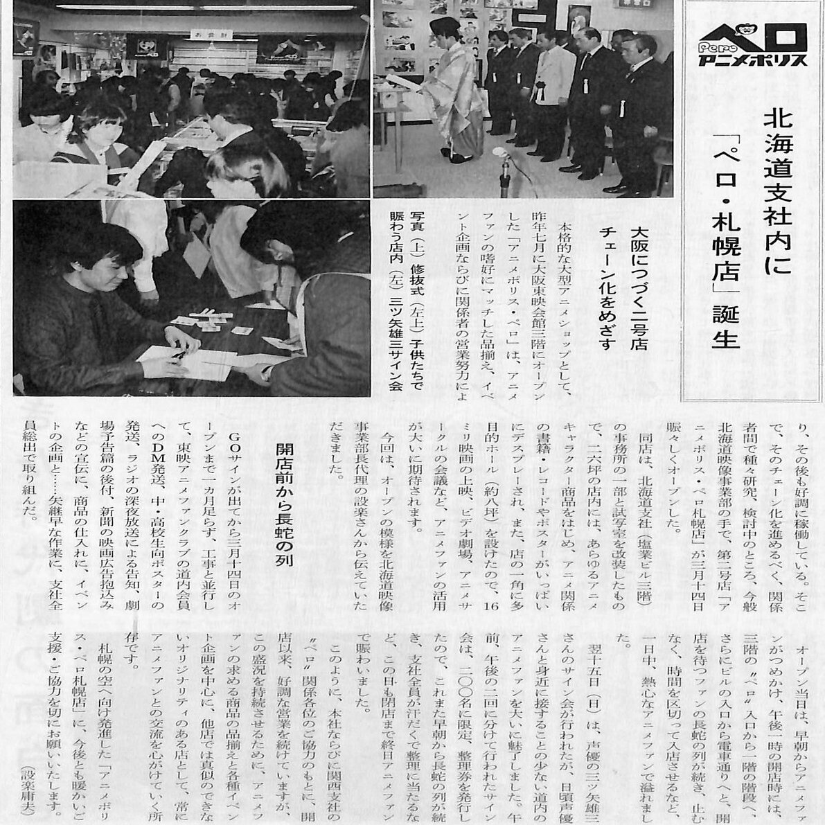 1981年3月14日、好調な大阪店に続き、「北海道支社映像事業部」が「北海道支社」内に「アニメポリス・ペロ」札幌店をオープンします。