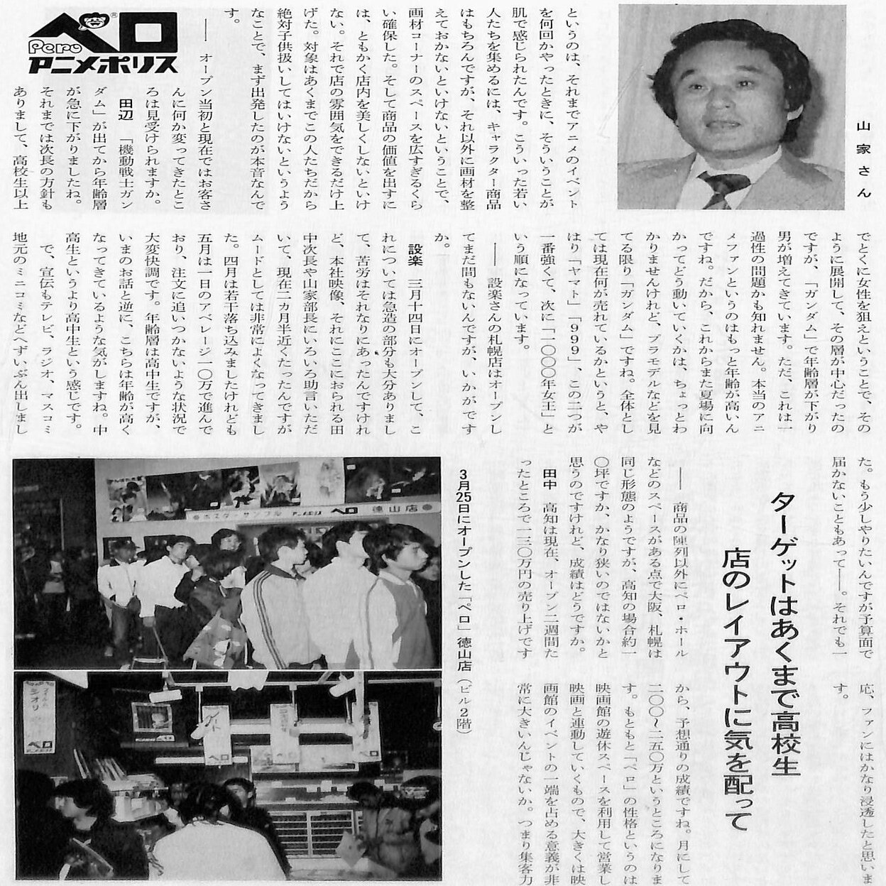 東映直営3店舗に加え、1981年1月31日松山店、3月15日徳山店、3月25日徳島店、4月25日高松店とフランチャイズ店が5店舗誕生した「アニメポリス・ペロ」は、アニメブームに乗り、各地で好調な売り上げを上げます。