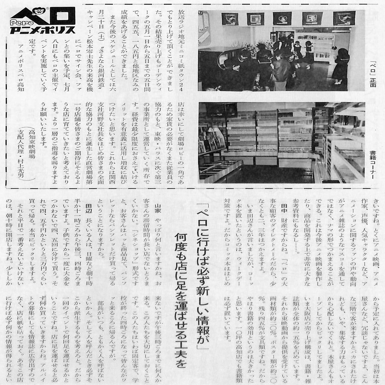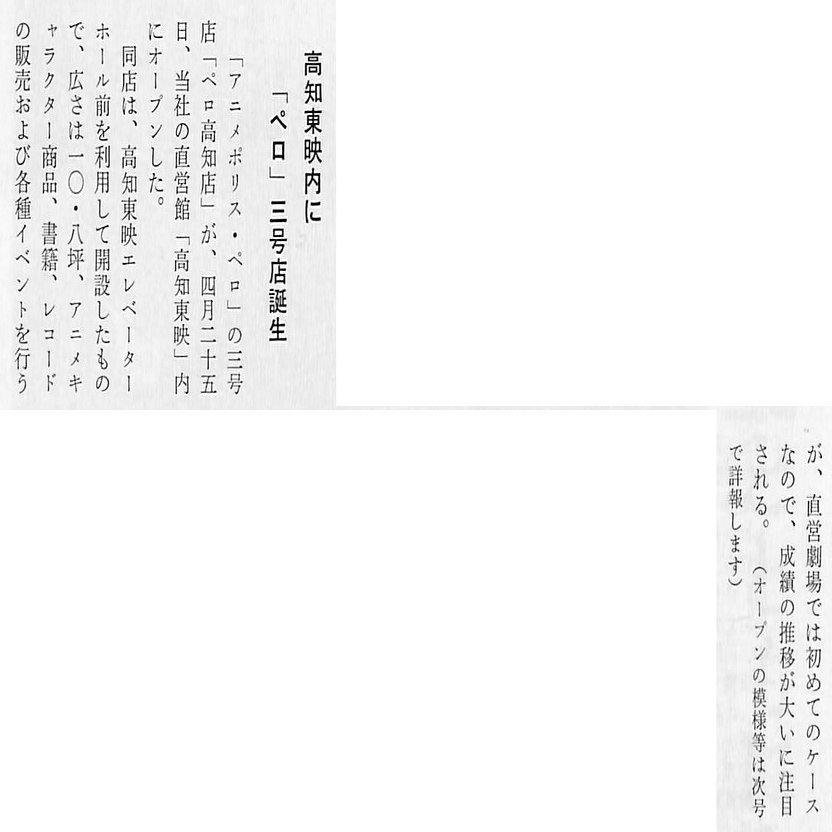 1981年4月には直営館の「高知東映」が館内スペースを使い「アニメポリス・ペロ」高知店を開店しました。