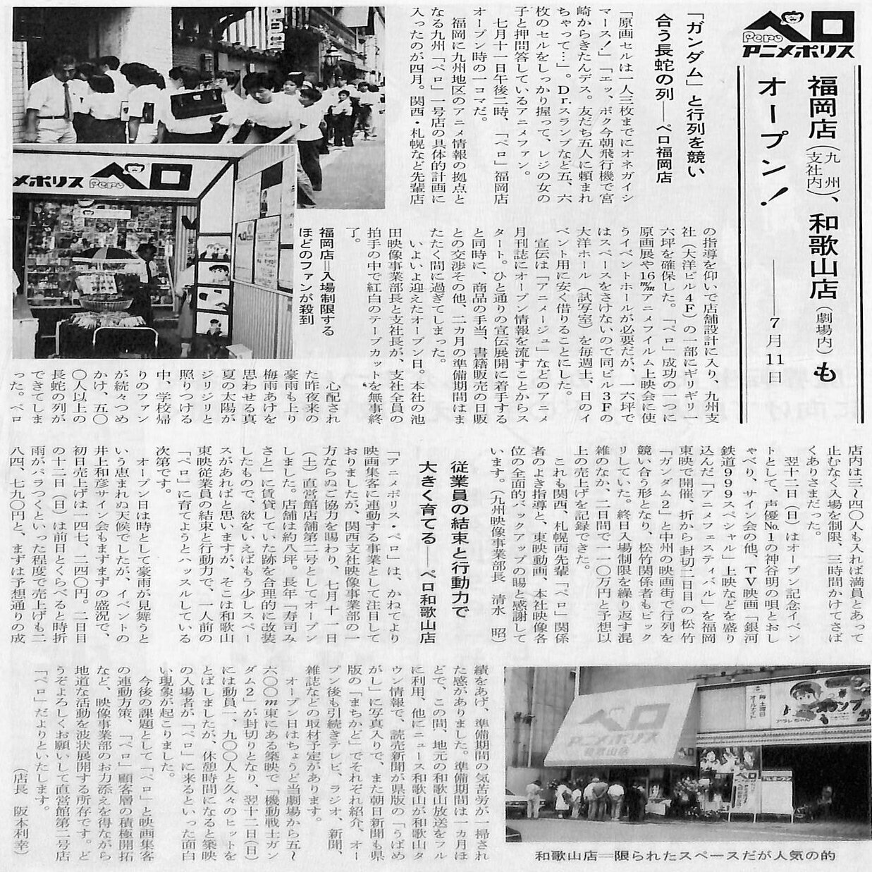 アニメ催事の盛況ではじまった1981年。前年に大阪東映会館3階に誕生した「アニメポリス・ペロ」は全国に店舗を拡大しました。