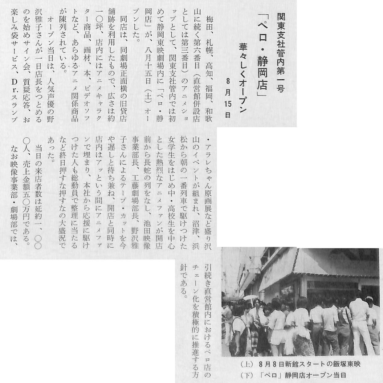 1981年8月15日、「関東支社」管内第1号店として静岡東映内に静岡店がオープンします。