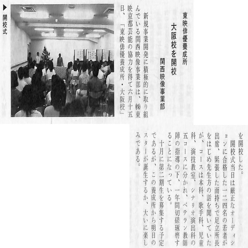 1985年6月15日、「関西支社映像事業部」は「京都撮影所・東映俳優養成所」と提携し「東映俳優養成所大阪校」を創設しました。