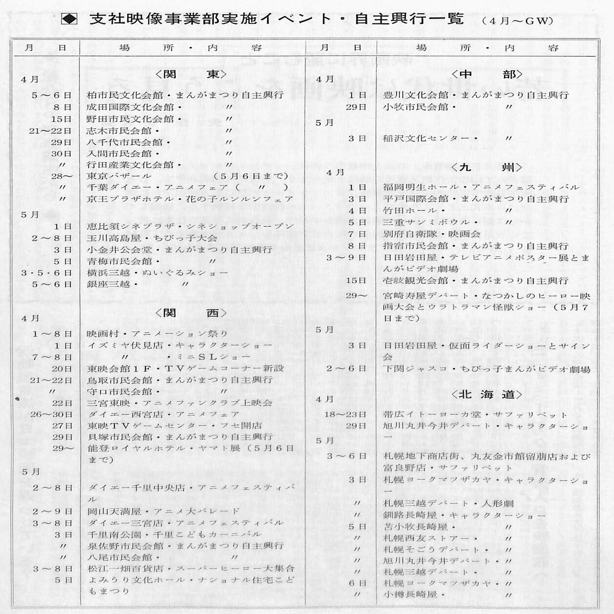 各支社の映像事業担当者は、アニメイベントを中心に様々な催事や自主興行を展開しました。