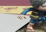赤いシャツに下半身丸出しの服装もディズニーによるもの。ただ原作本の挿し絵では服を着ていないので、ここは柄シャツとサロペットというアレンジがなされた。