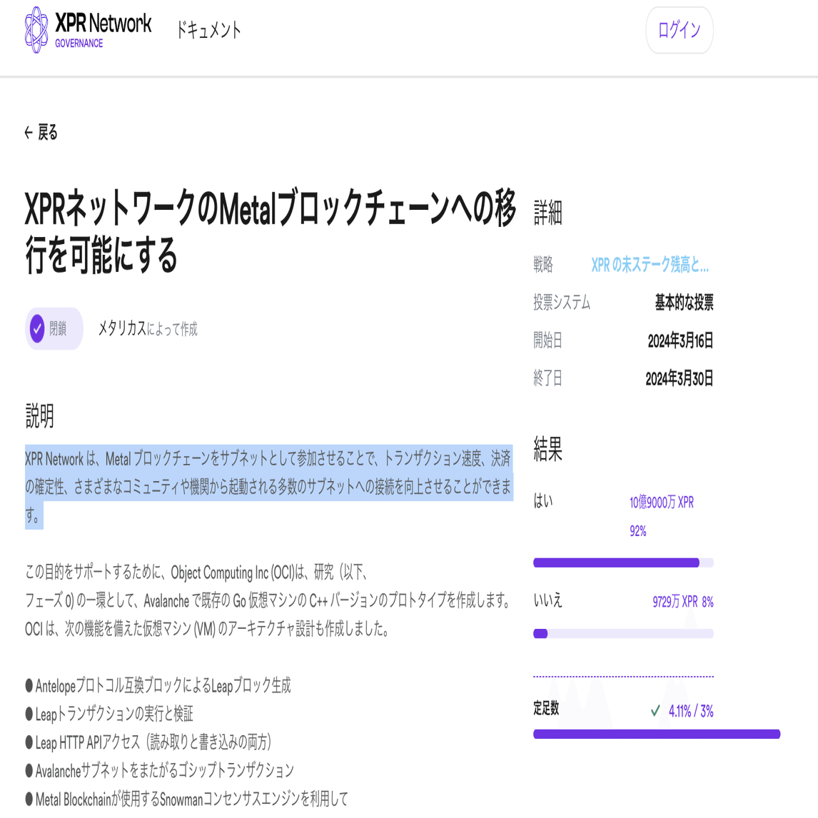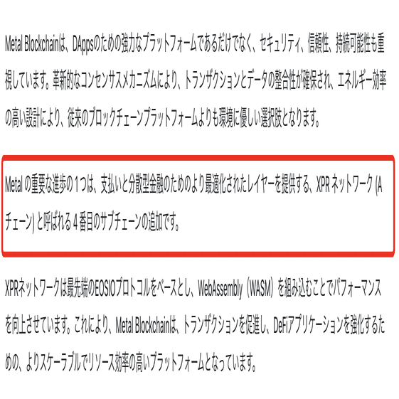 現在Metal Blockchainのドキュメント上でも、XPR Networkチェーン(A-Chain)はEOSIOベースのVMを実装しSnowmanコンセンサスで稼働すると明記されており、リソース効率の改善など機能面でも金融用途に向けた調整が施されています。