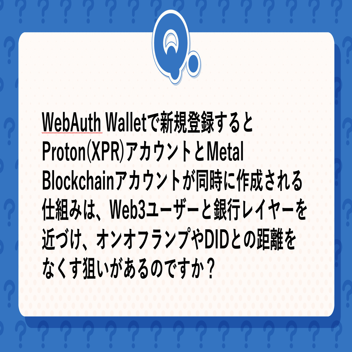 XPR NetworkおよびMetal Blockchainとの統合は高度に進んでおり、現在WebAuth Walletで新規登録を行うと、Proton(XPR)ネットワークのアカウントとMetal Blockchain上のアカウントが同時に作成される仕組みになっています。ユーザーはウォレット内で希望する@ユーザー名を選択し、1つの12語のリカバリフレーズから両ブロックチェーンでの鍵ペアが生成・管理されます。