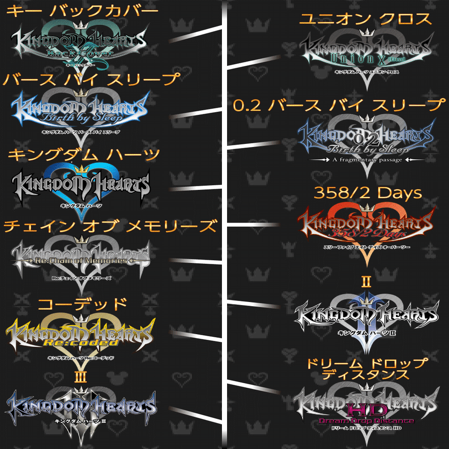 キングダムハーツのシリーズにおける問題としてまずこれが上がると思います。シナリオが1から全部つながっている関係上、楽しむための予習もとい下準備に膨大な時間を使うハメになる・・・つまりどういうことかというと