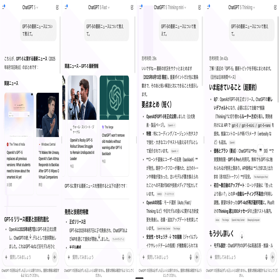 【GPT-5アプデ】最新全5モード同時比較!Fast爆速・Thinking Mini高精度・AutoやProの実測結果は?