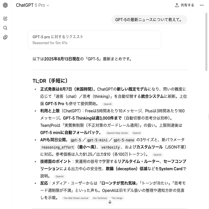 「GPT-5の最新ニュースを教えて」