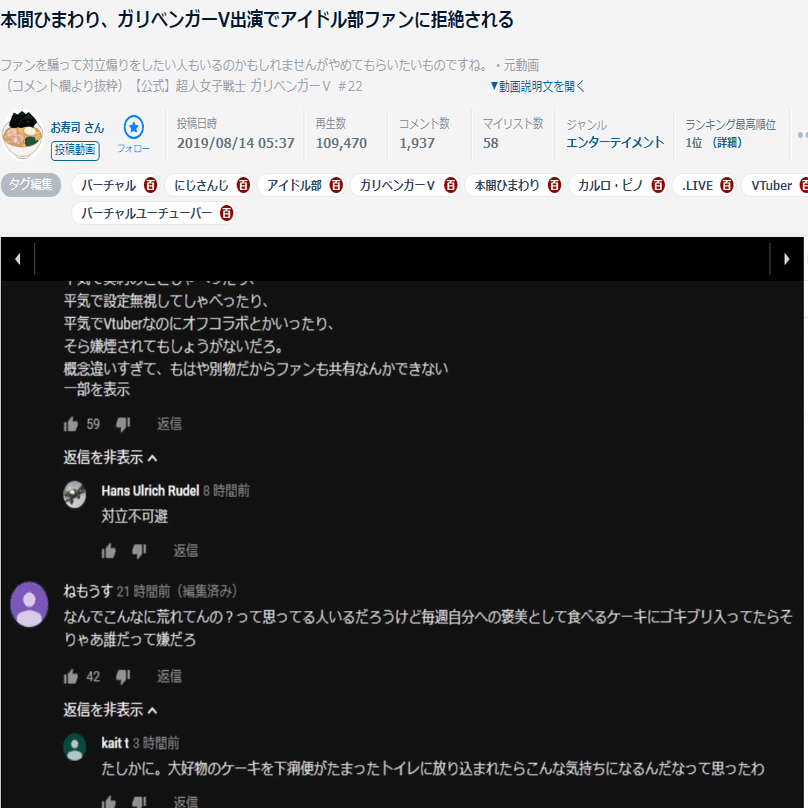 2「にじさんじの活動者を「バーチャルYouTuber」として定義したが、四天王ら先駆者の運営や、そのリスナーの一部はそれを受け入れなかった。」