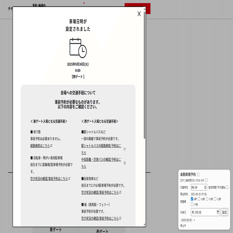 新機能追加!万博来場予約・入場予約・変更自動化ツール,2日前解放西9時取得実績あり!v.3.0.1