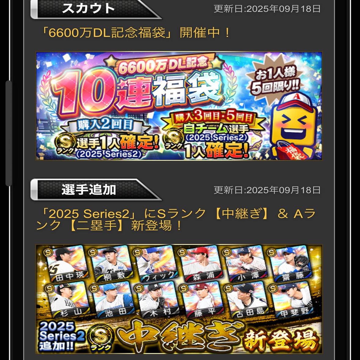 プロスピの更新入りましたね