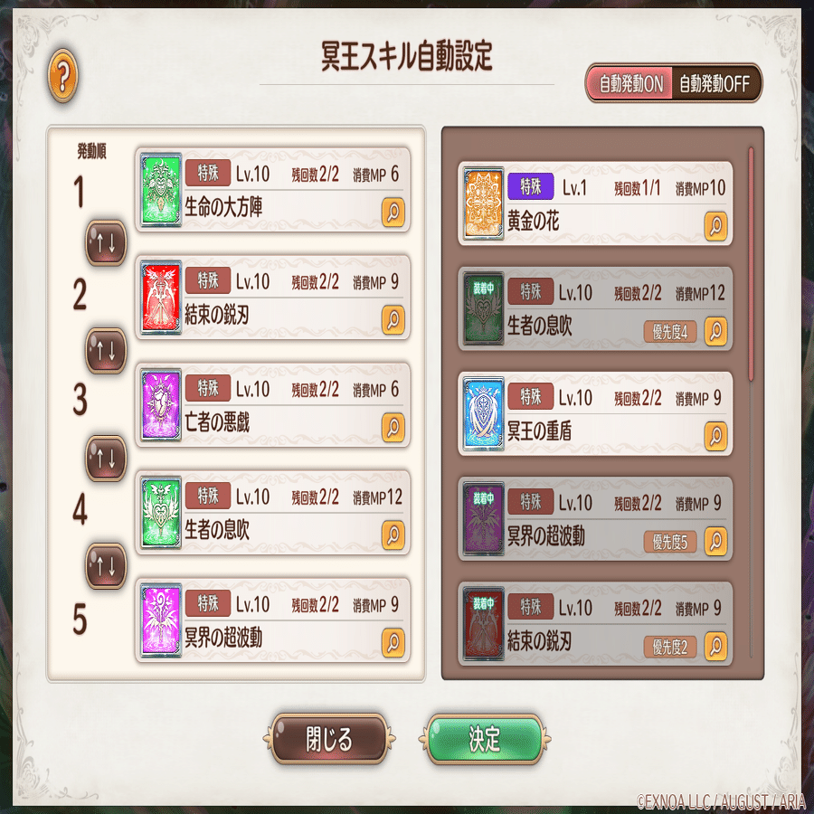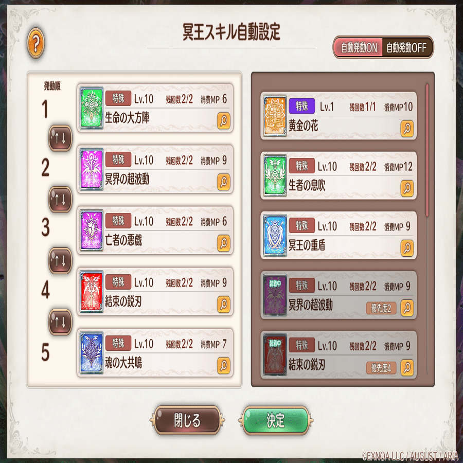 ・冥王スキル自動発動設定